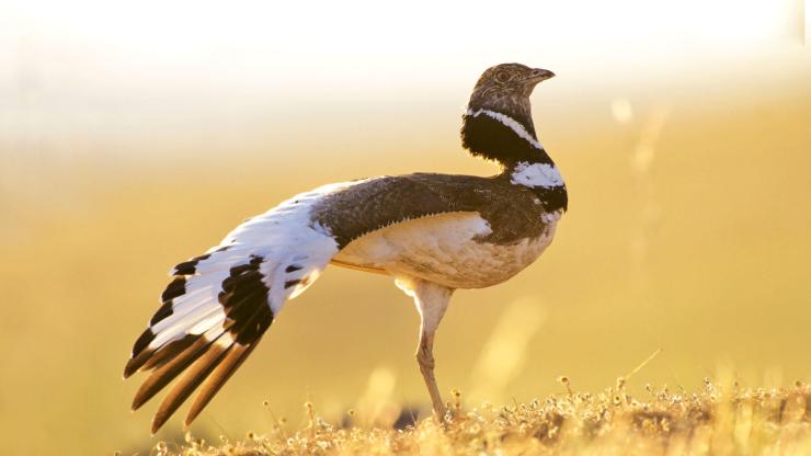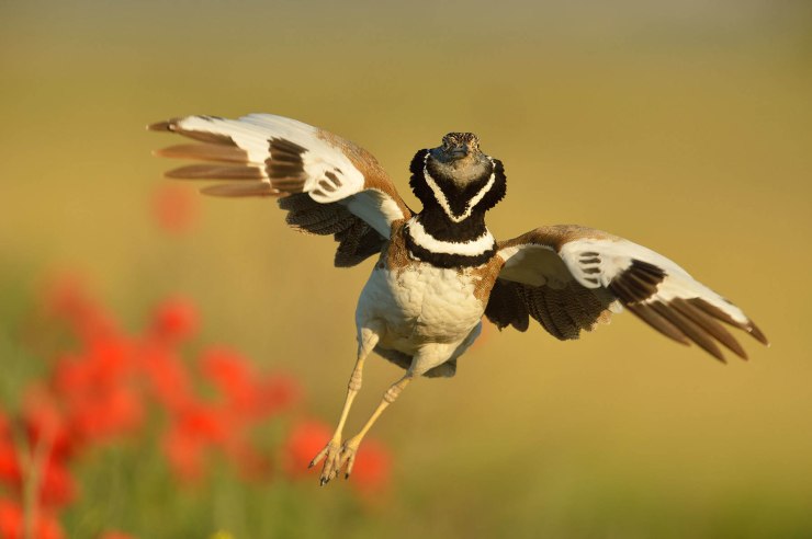 Another joyful encounter is with a displaying male Little Bustard, as he leaps from the ground with his wings outspread. This behaviour is designed to attract the attention of passing females and is accompanied by a distinctive grating call. At another time of year, Little Bustard is hard to find.