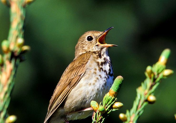 “The island voice which came… most beautifully and clearly each evening was the voice of a forest spirit, the hermit thrush. At the hour of the evening’s beginnings, its broken and silvery cadences drifted with infinite deliberation across the water. Its phrases were filled with beauty and its meaning that were not wholly of the present, as though the thrush were singing of other sunsets, extending far back beyond his personal memory, through aeons of time when his forebears had known this place and from spruce trees long since returned to earth had sung the beauty of the evening. Mankind has gone very far into an artificial world of its own creation… But I believe that the more clearly we can focus our attention on the wonders and realities of the universe about us, the less taste we shall have for destruction.”