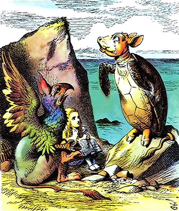 So she sat on with closed eyes, and half believed herself in Wonderland, though she knew she had but to open them again and all would change to dull reality – the grass would only be rustling in the wind, and the pool rippling to the waving of the reeds – the rattling teacups would change to the tinkling sheep bells, and the Queen’s shrill cries to the voice of the shepherd boy – and the sneeze of the baby, the shriek of the Gryphon, and all the other queer noises, would change (she knew) to the confused clamour of the busy farmyard – while the lowing cattle in the distance would take place of the Mock Turtle’s heavy sobs.